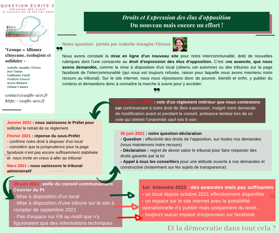 Retrouvez cette question, à nouveau, posée lors du conseil communautaire du 10 février pour notre groupe d’opposition par Isabelle Amaglio-Térisse pour notre groupe et les réponses ainsi que les suites que nous attendons juste ici ⤵️