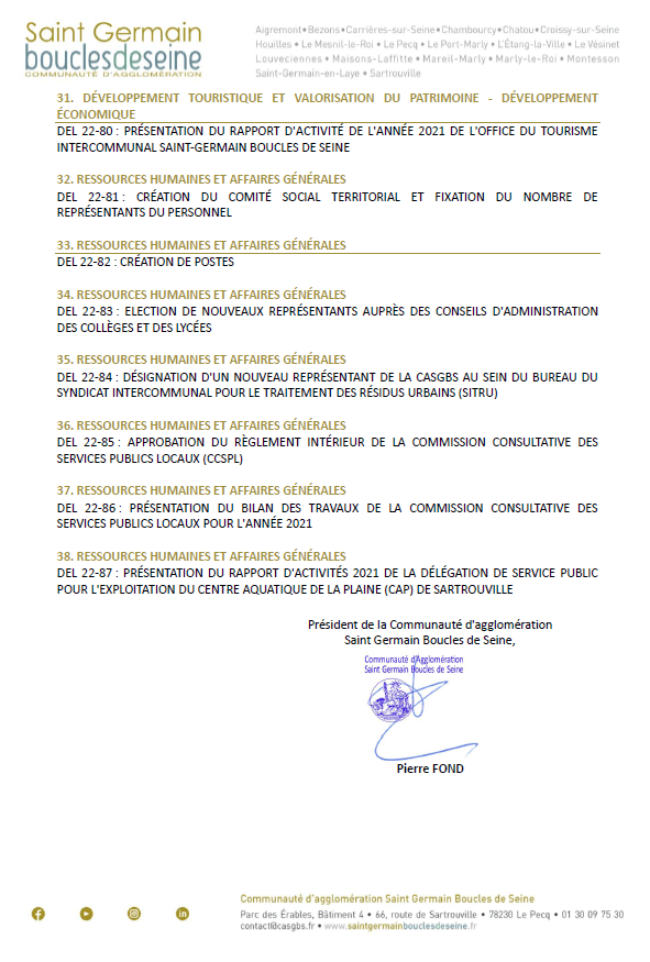Deuxième sujet majeur de ce conseil : le budget avec l’exécution 2021 et les ajustements 2022. Nous avons voté contre les différents budgets car nous ne souscrivons pas à la vision politique d’une intercommunalité étriquée, Nous avons relevé trois points particuliers : la faiblesse du taux de réalisation des dépenses d’investissement (30%), la zone de La Borde à Montesson car nous attendons toujours de comprendre ce budget pour un projet arrêté et la pépinière-hôtel d’entreprises à Sartrouville fermée depuis novembre 2020 sans aucun débat, aucune information alors que le soutien aux entreprises et à l’emploi est un engagement majeur pour notre intercommunalité.