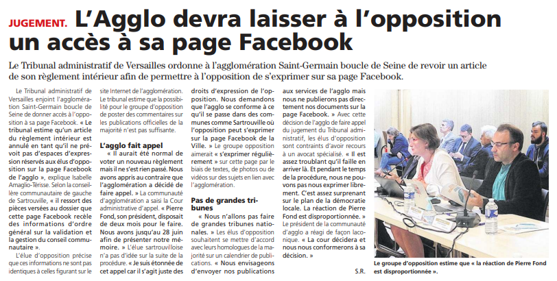 Voici bientôt 3 ans (+ ici) que nous demandons à pouvoir faire publier une tribune « de libre expression » par l’intercommunalité sur sa page facebook, comme nous le faisons sur son site internet régulièrement (cf. ici). Comme nous le faisons, au niveau de la ville, à Sartrouville sans difficultés tous les 3 mois, dans un format convenu etc. (+ ici par exemple)