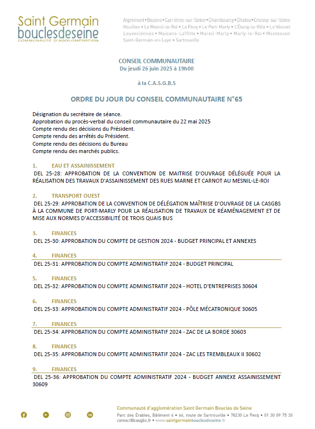 Un conseil très budgétaire et avec un important volet de régularisation relatif à la piscine intercommunale située à Sartrouville (CAP) à la suite des observations de la Chambre régionale des comptes.