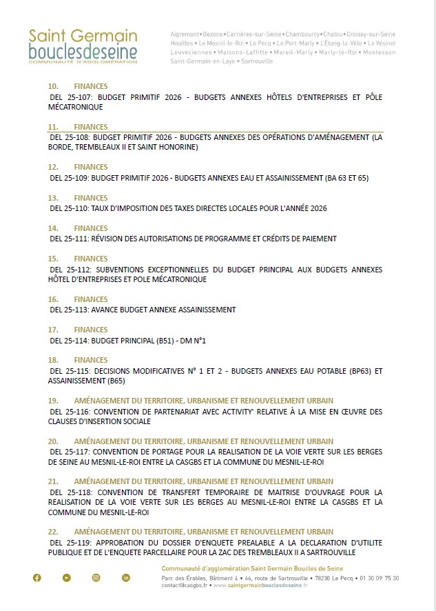 Vote favorable au réaménagement des pôles gares (Marly-le-Roi, Maisons-Laffitte), aux pistes cyclables (Mesnil-le-Roi, Carrières-sur-Seine), et à l’intégration dans les lignes 18/19.