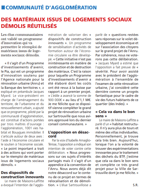 Nous avons voté des expérimentations dans plusieurs villes susceptibles d’être dupliquées, des innovations sur la gestion des biodéchets, des navettes électriques testées à Houilles et au Vésinet.